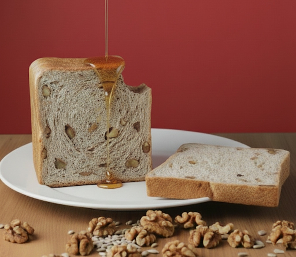 堅果種子的香氣在烘烤中緩緩釋放;核桃的堅果油脂香與葵瓜子的特殊口感,層次豐富且不甜膩。每一口都是自然原味的平衡,簡單的調味讓人品嚐到不簡單的質感與用心。是一款可以天天吃不膩的吐司。